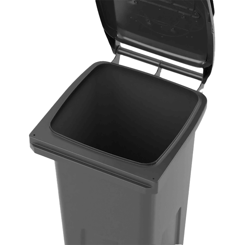 The container has an integrated handle for easy use and comes with 200 mm diameter wheels with polypropylene rims and solid rubber tyres on an electro-galvanised axle.